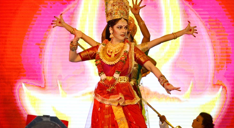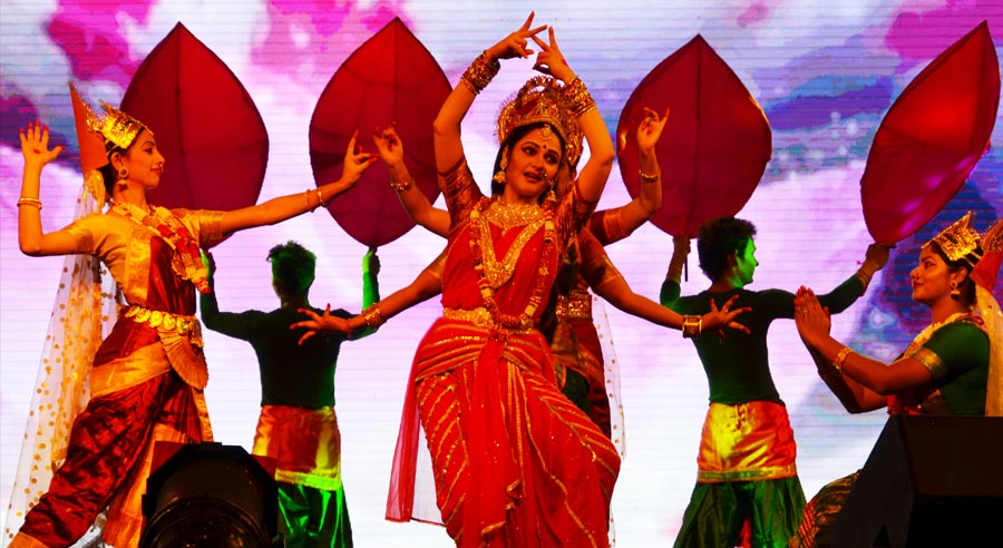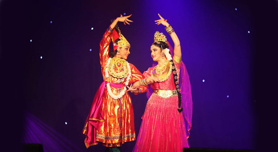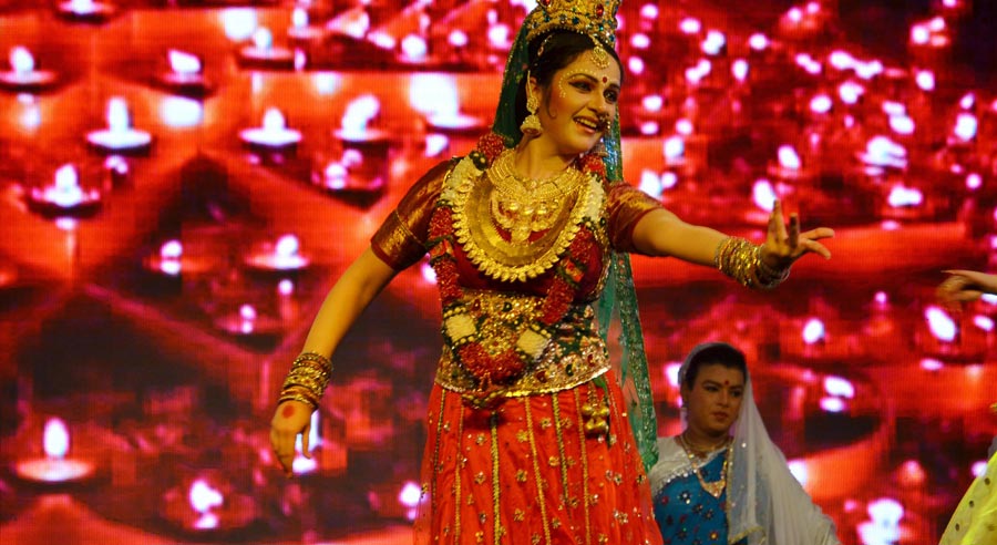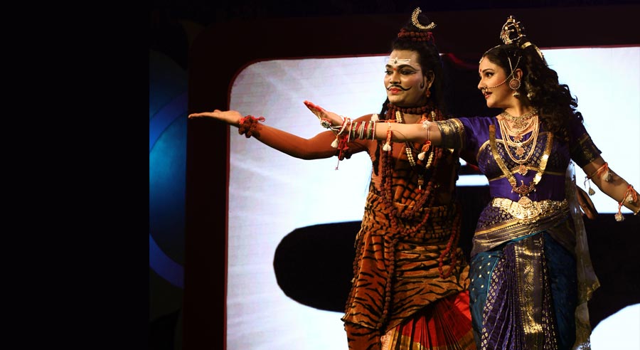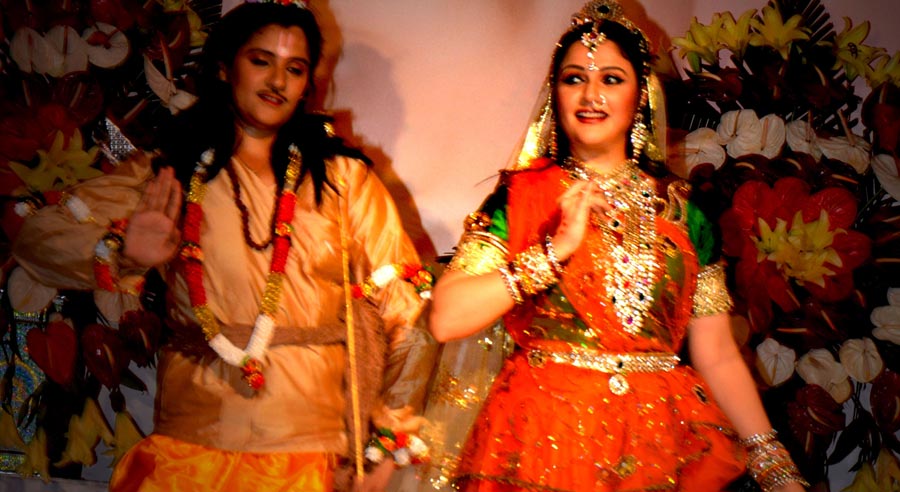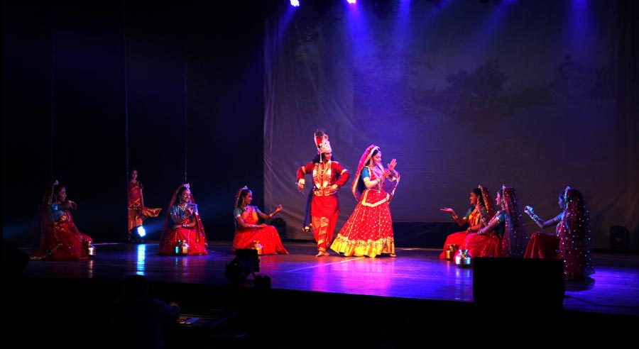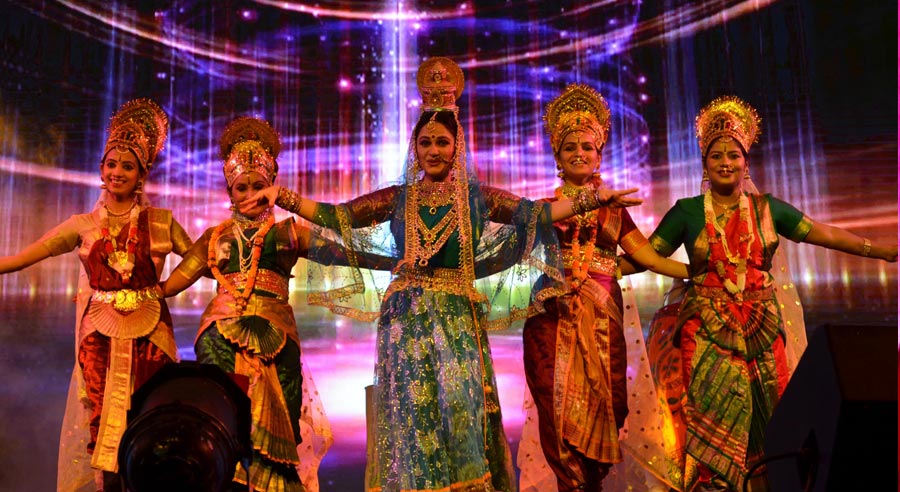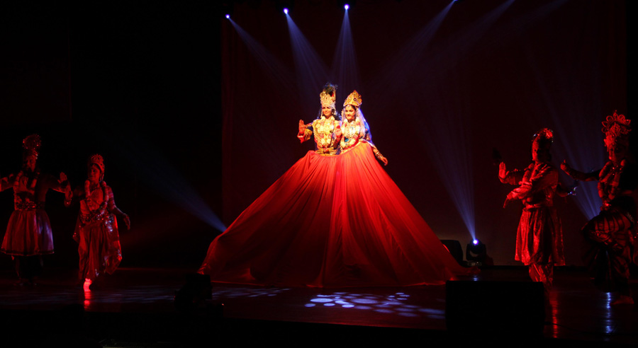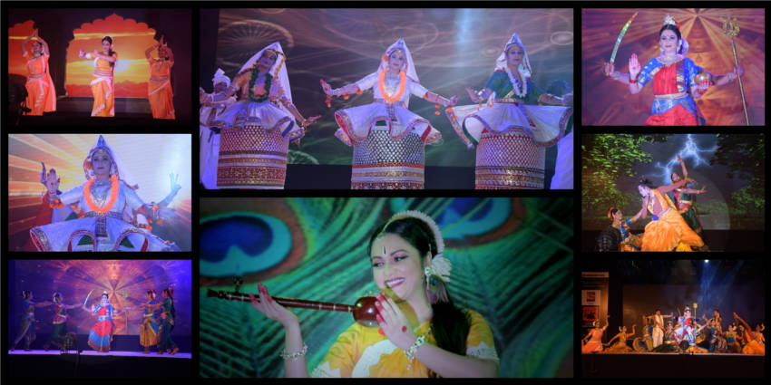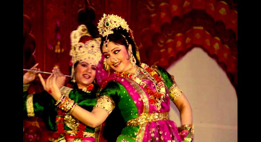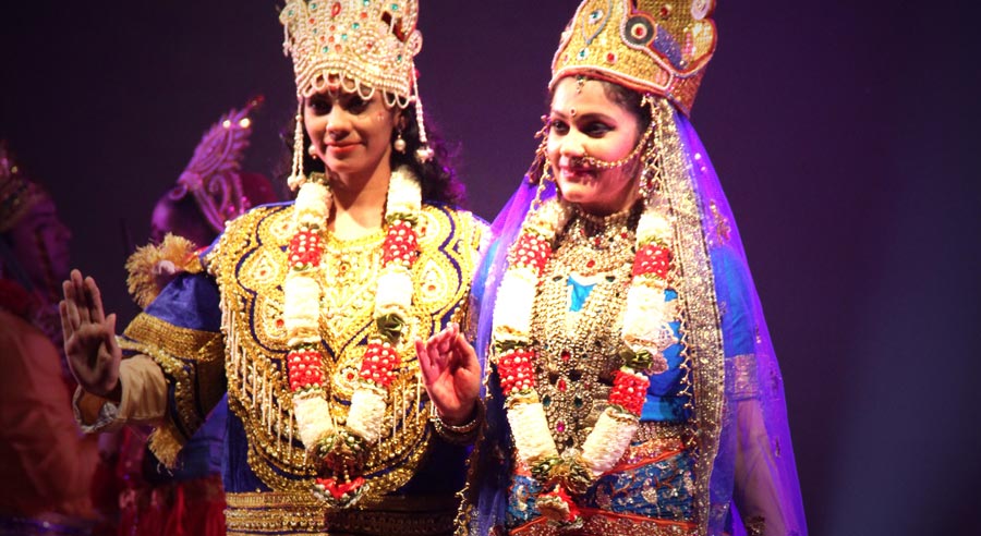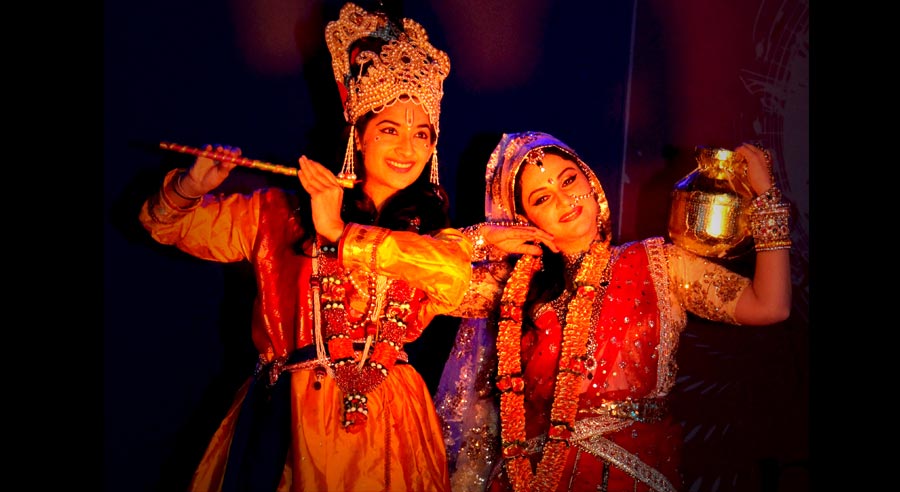 LaxmiVishnu and RadhaKrishna’s life story performed in two classical forms of dancing, Bharatnatyam and Kathak, along with traditional folk dances of India-Dandiya, Garba etc. Lord Vishnu takes different births and finally that of Krishna. So does Laxmi as Radha. Both are united and married.
