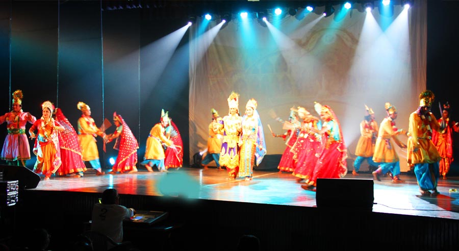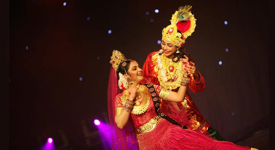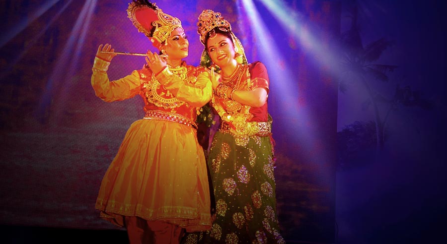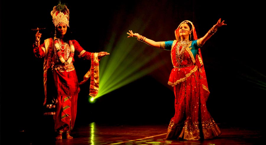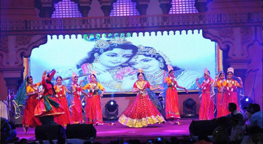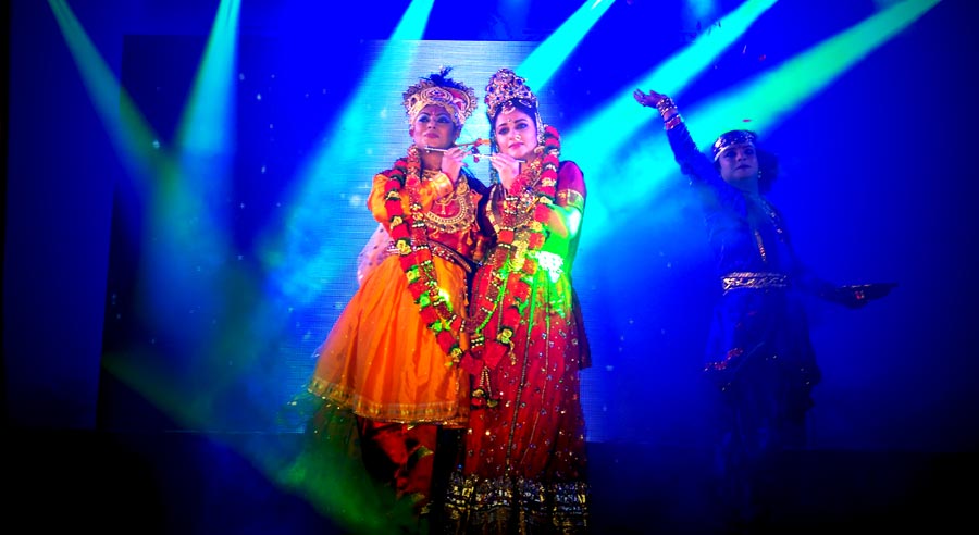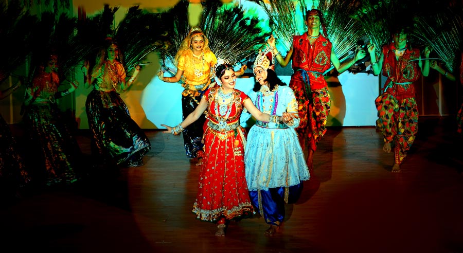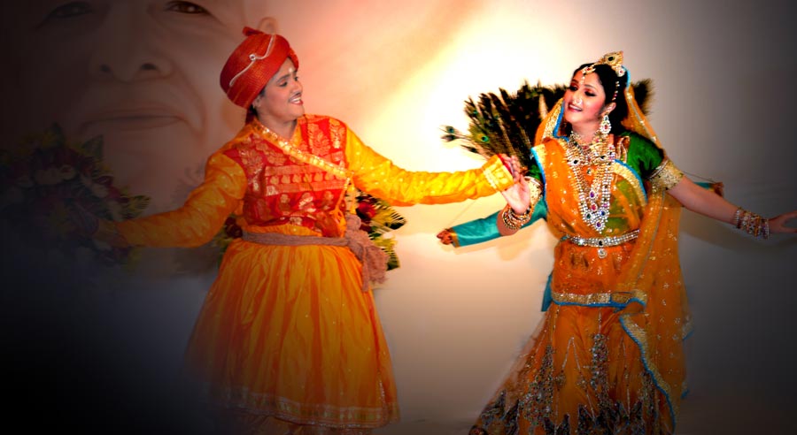 Is a spiritual musical dance drama taking you through the spiritual journey of Krishna's union with Radha. It's a theatrical presentation of story performed via dance, music, dialogues and narration, with costume and scenery. The choreography attempts to bring to light a few notable events during Lord Krishna's sojourn on earth, particularly, his youthful leela for which he is venerated. The stage presentation depicts the Lord's mischief with the gopis of Brindavan, the special bond between Radha and Krishna and their eternal love.